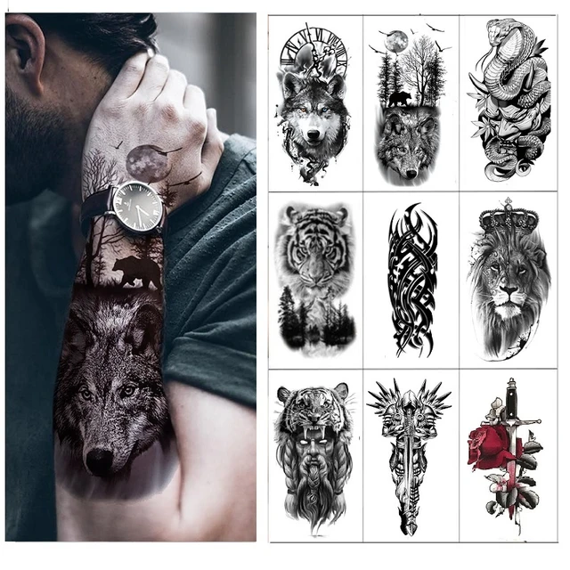 2022 New Temporary Waterproof Lion Tattoo Sticker For Men Fake Tiger Skull Wolf Arm Shoulder Sleeve Body Art Crown Tattoos Woman Temporary Tattoos Aliexpress